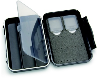 C&F Medium 2-Row WP Tube Fly Case med 3 fack (CF-2403V) – Flugask i M-storlek, framtagen efter önskemål från Steelhead-fiskare i Nordamerika och europeiska laxflugfiskare för att justera layouten. Små fack för att förvara krokar, cones och tuber.
