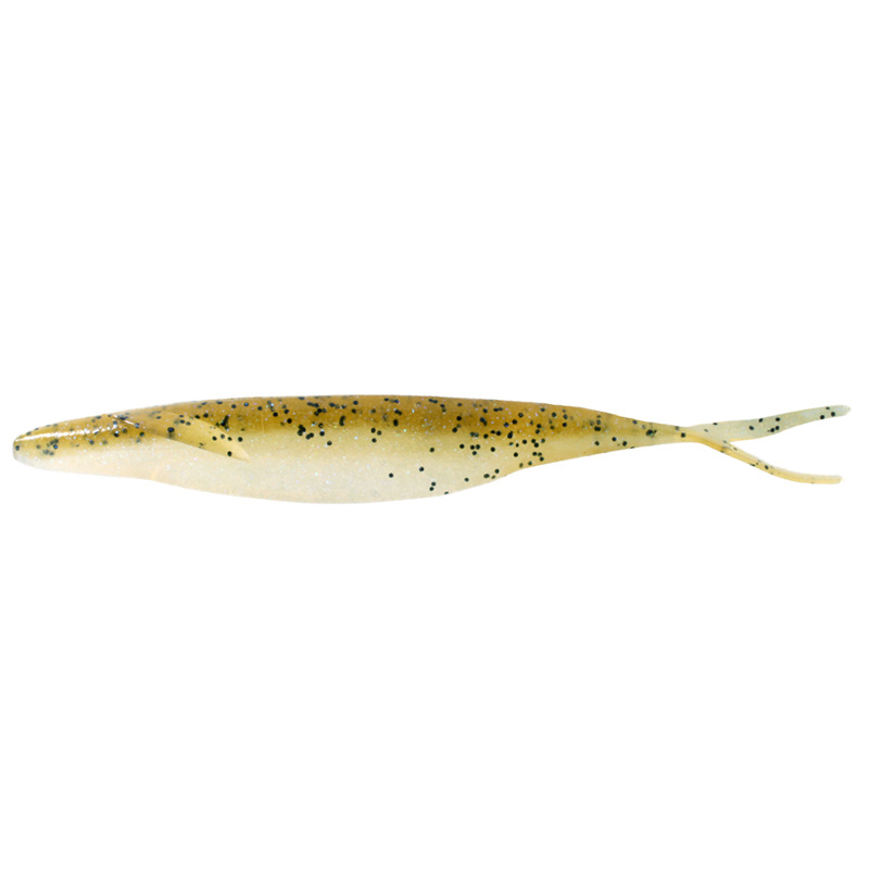 Fenorna fungerar som stabilisatorer under spinnstopp och gör att betet faller helt horisontellt och inte med huvudet före som andra mjuka jerkbaits gör.