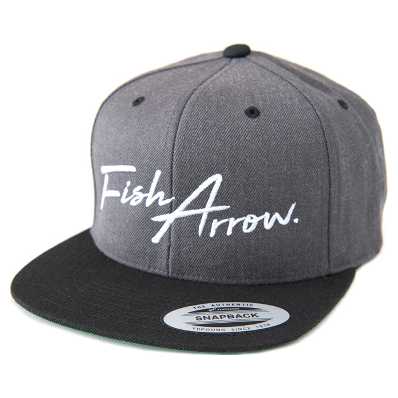 Platt keps med Fish Arrows nya logotyp broderad på den. Kepskroppen är den vanliga YUPOONG-klassikern.