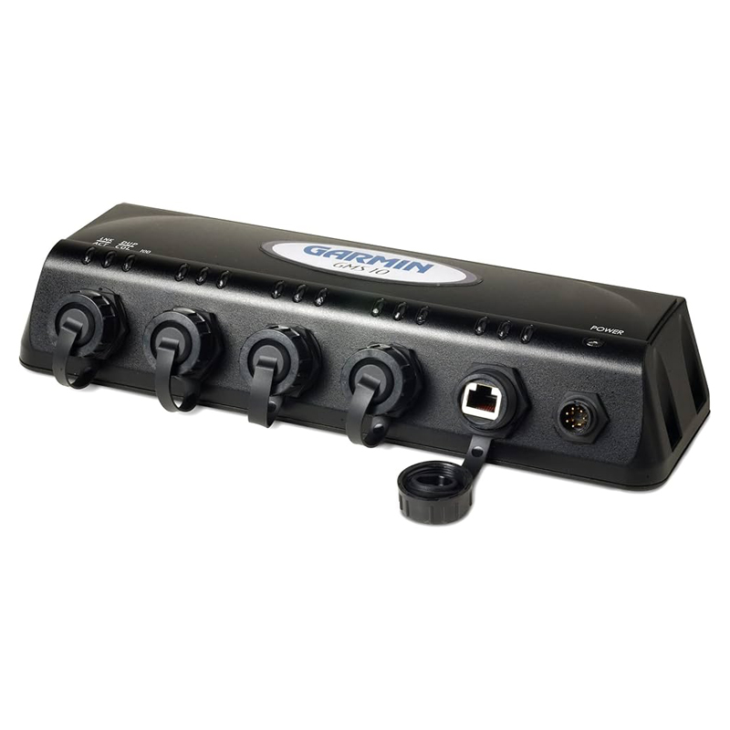 Garmin GMS 10 är en marinanpassad nätverkshub med vattentäta anslutningar för Garmins nätverkskablar.