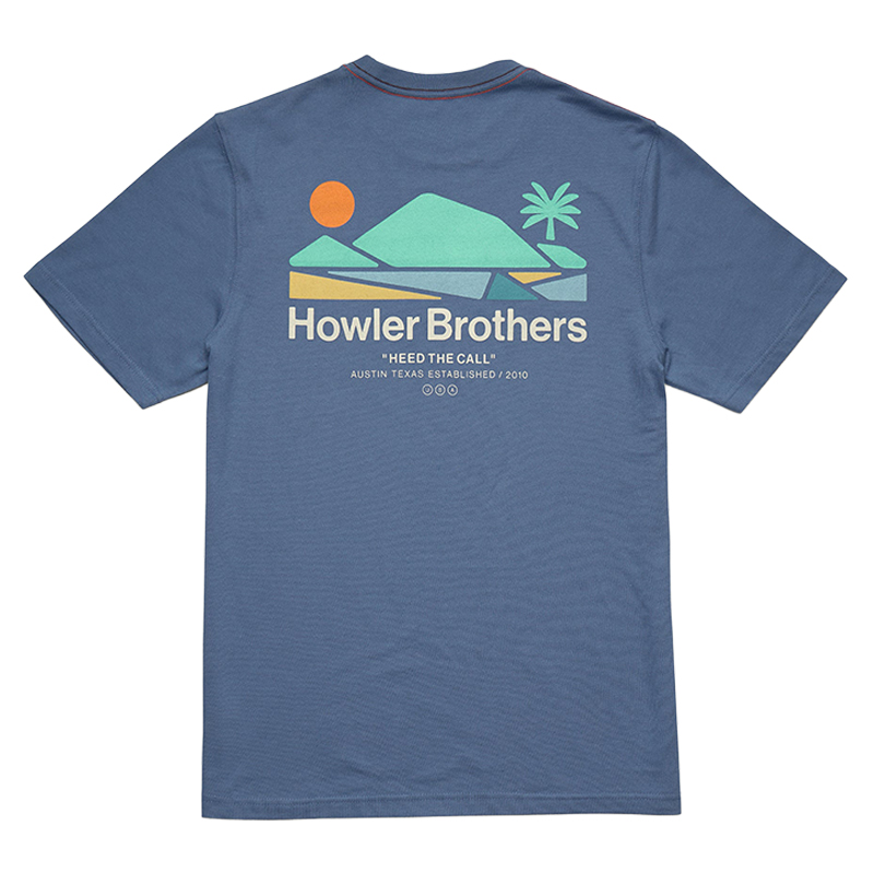 Bahía de Howler Blue Horizon är en tunn och mjuk t-shirt som funkar lika bra på bryggan som på stan. Den lätta bomull/polyester-blandningen torkar snabbt, känns behaglig hela dagen och håller passformen tvätt efter tvätt. Stilen är avslappnad med Regular fit, så den sitter snyggt utan att kännas tajt. Trycket är gjort med mjuk, vattenbaserad färg som inte blir stelt mot huden, och detaljer som kontrastsömmar och tejpade kanter ger en diskret men genomtänkt look.