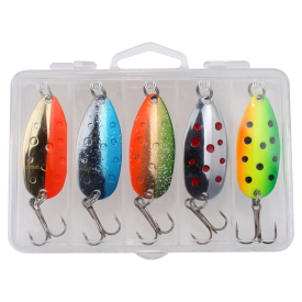 Lill-Sluken är ett grymt litet bete i mässing för öring, röding, regnbåge och abborre. Här i ett mixpack med 5 olika färger i betesbox.