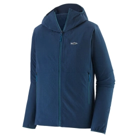 Patagonia M's R1 TechFace Fitz Roy Trout Hoody, Tidepool Blue - Plagget är varmt, stretchigt och ventilerande och har utformats för att vara mångsidigt vid kallt väder. Till fördelarna hör nötningstålighet, DWR-finish (durable water repellent) och tekniska detaljer för alla överraskningar som en dag på vattnet kan medföra. Tillverkad i en Fair Trade Certified™-fabrik.