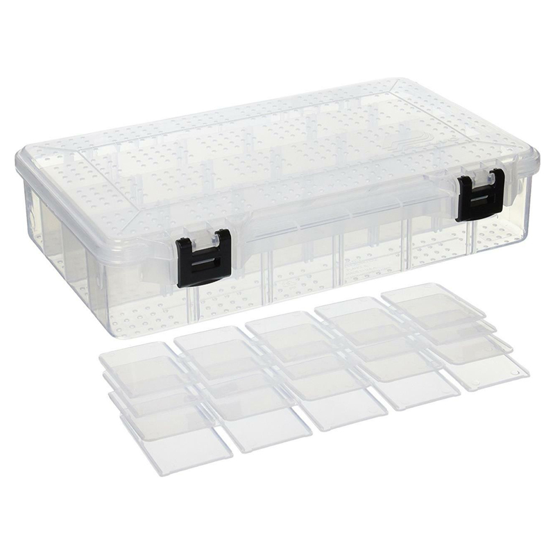 Plano 3700 Deep Hydro-Flo Stowaway, en låda med hundratals hål för vatten att rinna ut och för luft att cirkulera. Detta förhindrar att beten och krokar rostar.