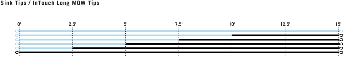 RIO’s InTouch Long MOW Tips är 15 fot långa spetsar med olika kombinationer av flytande och sjunkande sektioner, perfekt anpassade för stora flugor och blåsiga förhållanden. Deras extra längd och ConnectCore-teknologi med ultra-låg stretch förhindrar att ankaret blåses bort, vilket gör dem till ett utmärkt val för speyspön över 13 fot. De ger en kraftfull och stabil kastupplevelse, särskilt för dem som tycker att vanliga MOW-spetsar är för korta.