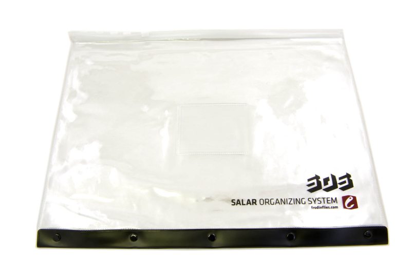 Jag har rest världen runt med min flugbindning, använt alla tänkbara flugbindningsväskor och till slut har allting ändå resulterat i kaos. Detta är bakgrunden till vårt enkla men funktionella packsystem SOS - SALAR Organizing System. Främst är det tänkt till flugbindningens alla prylar, men det har visat sig fungera lika bra till såväl tafsmaterial och skjutklumpar som småprylar, extra strumpor och fiskekartor. Mappen består av 5 fickor av klar stryktålig plast med en robust zip. Med hjälp av korthållaren märker du upp ditt sytem med namn och innehåll.