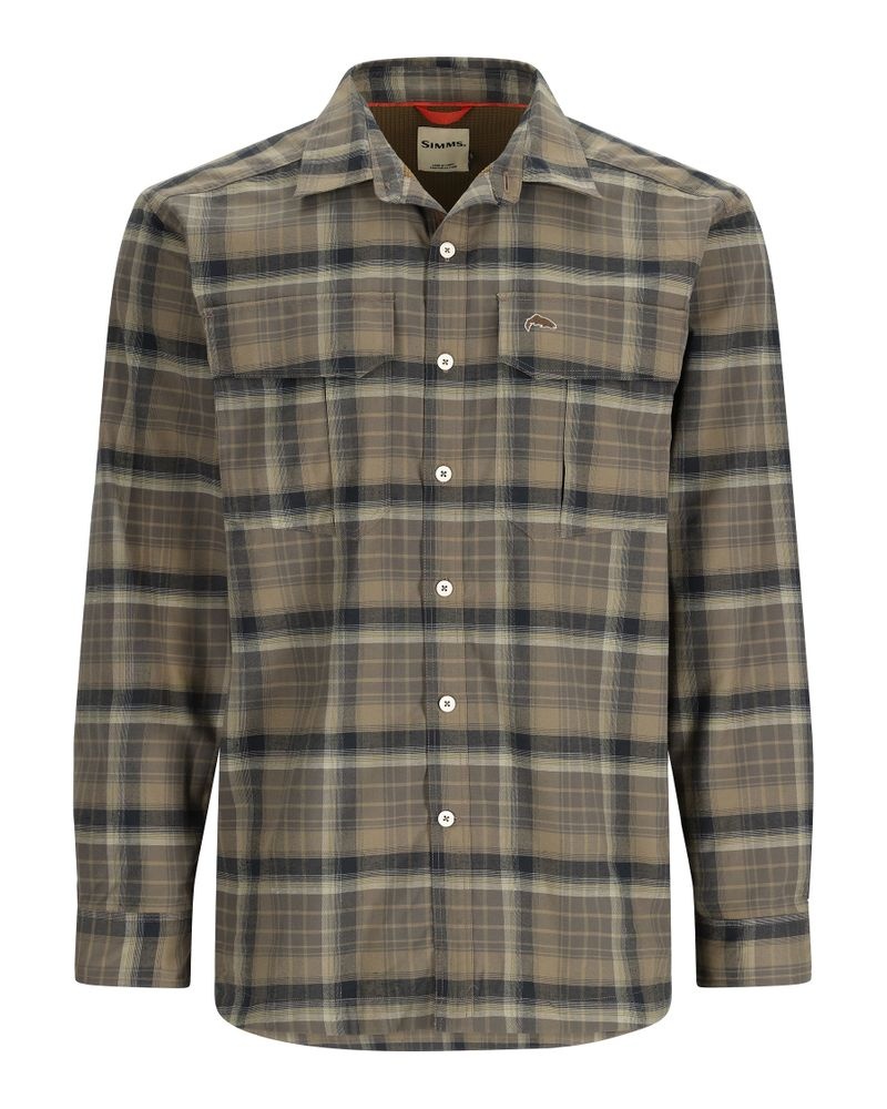 Denna slitstarka flanellskjorta med fodrad waffelfleece ger värme och komfort för vinterfiske. Med snabbtorkande material, chafe-free axelsömmar och lätt förlängt ryggslut passar den perfekt för kallt väder. De två bröstfickorna passar flugaskar och är säkrade med kardborre.