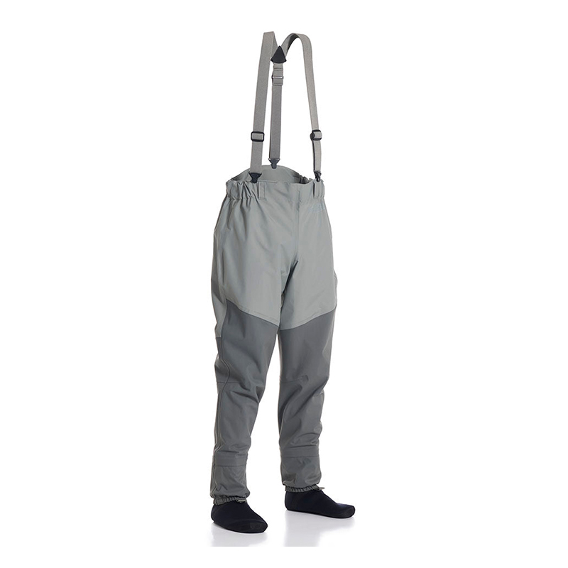Vadarbyxorna har justerbara, avtagbara hängslen i matchande färg så att du enkelt kan anpassa stödet efter klädsel och situation. Inbyggda grusskydd med krokar för kängornas snören hindrar småsten och sand från att leta sig ner i skon när du fiskar på strömsträckor eller längs grusbankar.