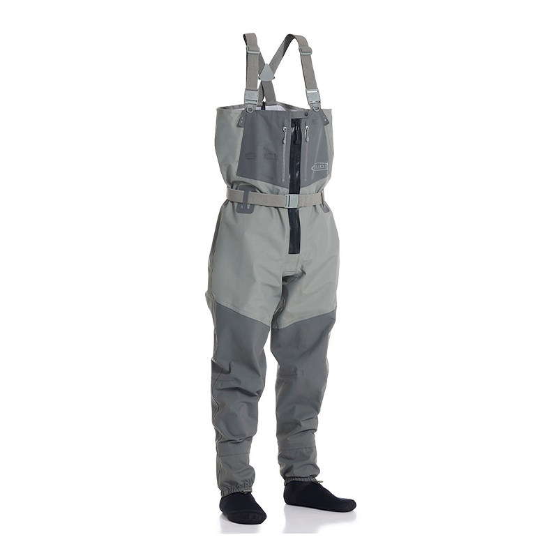 D-ringar, tillbehörsöglor och remmar både utanpå och inuti framfickorna gör det smidigt att fästa verktyg som peang, tafsklippare eller håvhållare. Inbyggda grusskydd håller sand och småsten borta från kängorna, och anatomiskt formade neoprensockor ger en bekväm passform även under långa fiskepass.