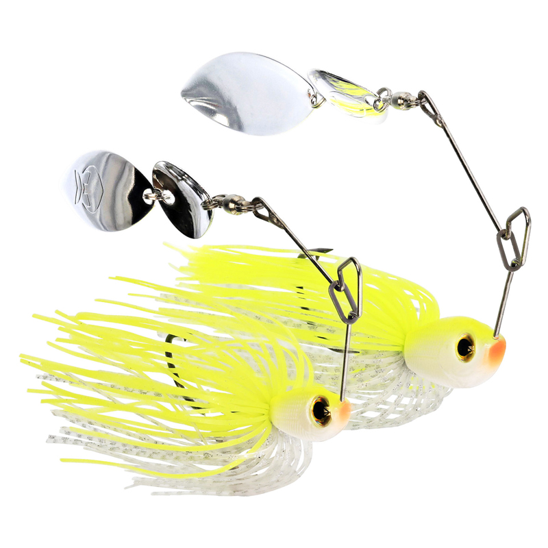 Perfekt för både grunda och djupa vatten. Det innovativa „Sure-Ring“-fästet gör att du enkelt kan knyta linan direkt eller använda tafs och beteslås vid gäddfiske. Den genomtänkta trådkonstruktionen säkerställer en stabil presentation och perfekt bladrotation. Med realistiska färger, högblanka blad och pulserande skirts är detta en spinnerbait rovfiskar inte kan motstå!
